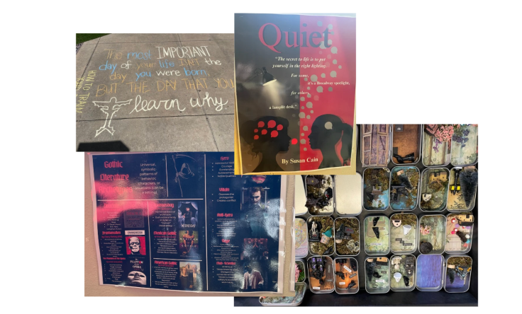 We started the session off with our definition of joyful literacies pedagogy, which we included in our one-pager. As we defined joyful literacies pedagogy for the audience, I made connections to my own classroom and the joyful projects I had done with my classroom this past semester—from my sidewalk chalk project on education to learn synthesis to our most recent foray into dioramas with setting as a character.
